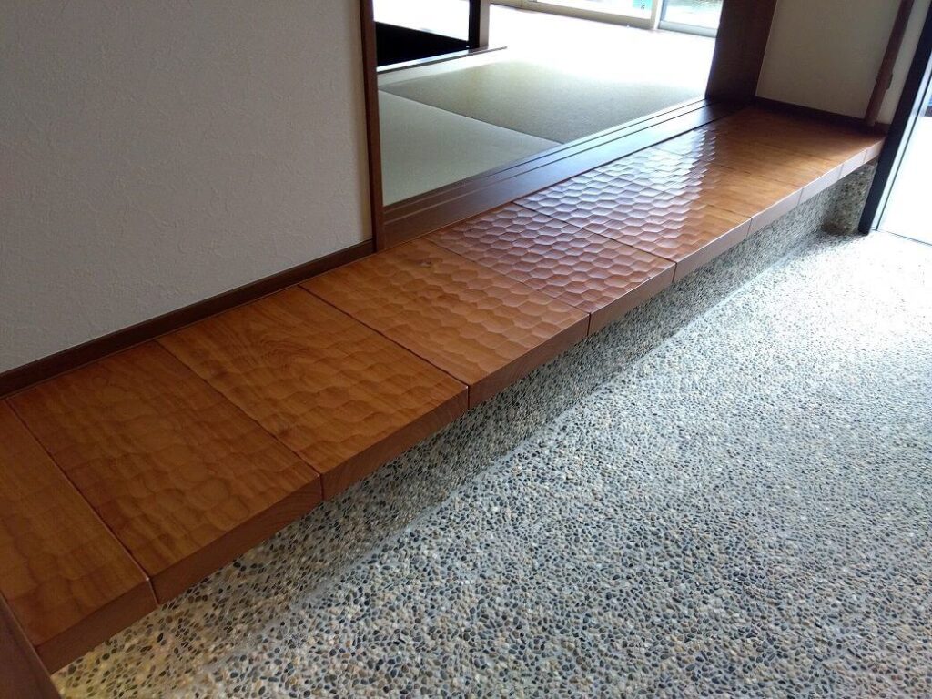 敷台 名栗加工 材:ケヤキ(亀甲なぐり)